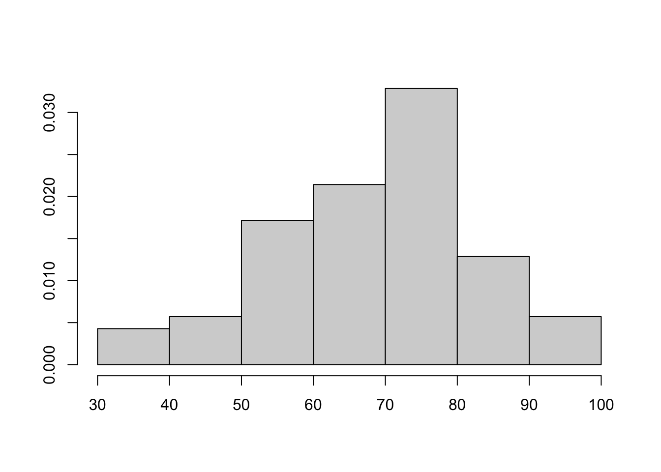 One way to visualize the distribution of a variable is to plot a histogram. A histogram groups data points into intervals, showing how often data values fall within each range. The horizontal axis represents the intervals (or bins), and the vertical axis shows the frequency or count of data points in each bin.