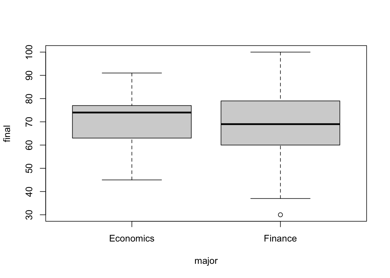 A boxplot, also known as a box-and-whisker plot, displays the median, quartiles, and range of the data. The box represents the interquartile range (IQR), which contains the middle 50% of the data, with the lower and upper edges corresponding to the first (Q1) and third quartiles (Q3). Whiskers extend from the box to indicate the range of values within 1.5 times the IQR from Q1 and Q3, while points beyond this range are considered outliers.