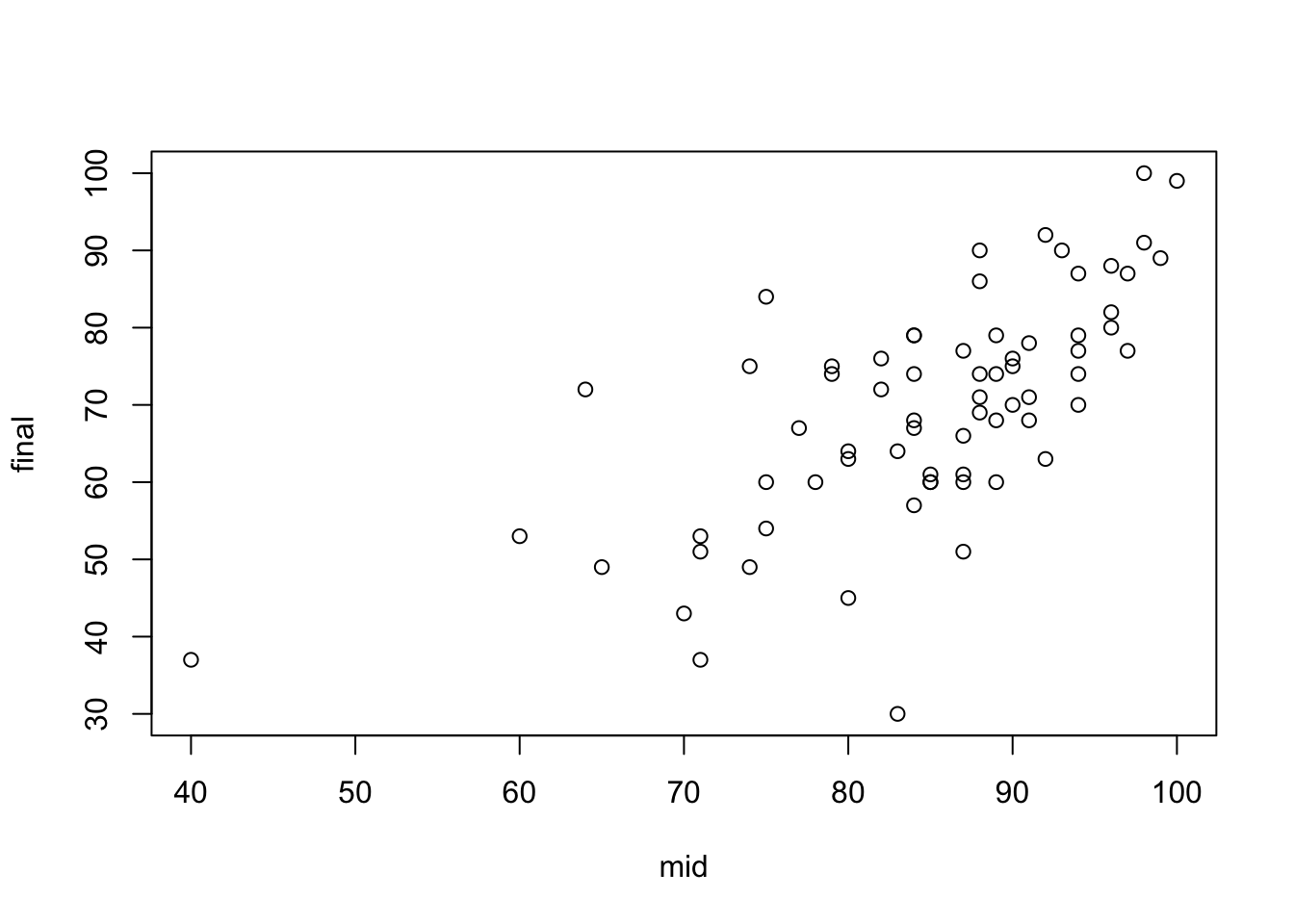 To observe the relationship between variables, it is straightforward to make a scatter plot of \(Y\) against \(X\). An upward-sloping pattern in the scatter plot indicates that the variables tend to move together, whereas a downward-sloping pattern suggests that they move in opposite directions. A flat slope implies the absence of correlation between the two variables.