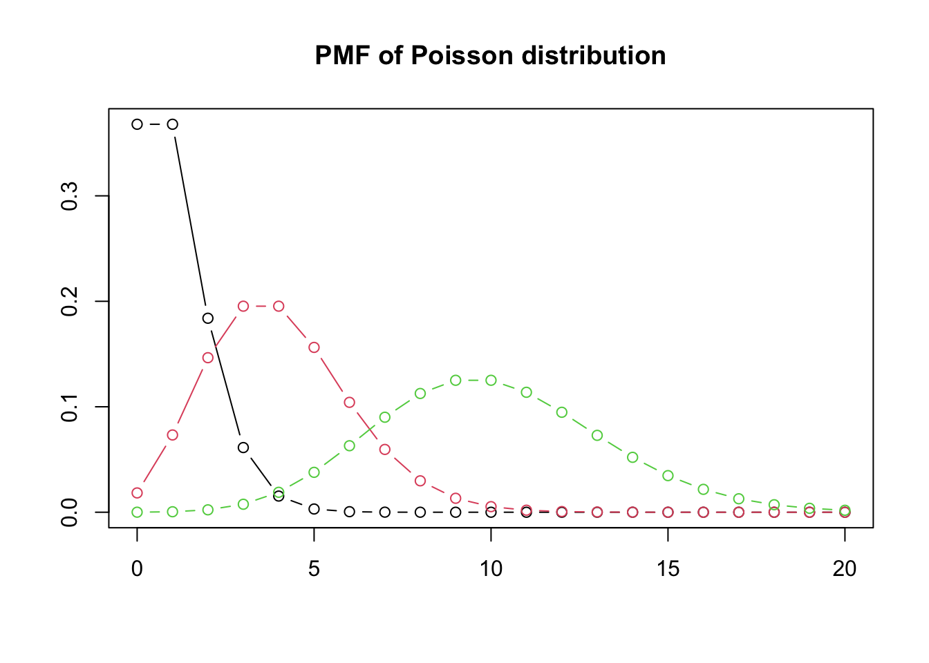 We can easily verify this is a valid PMF because \(\sum_{k=0}^{\infty}\frac{\lambda^{k}}{k!}=e^{\lambda}\).